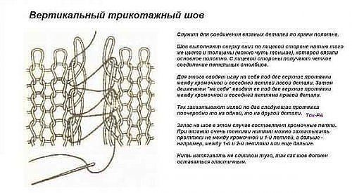 Начиная сверху выполняем трикотажный шов, как показано на схеме. Крючком № 3 вяжем два цветочка из цветной пряжи и пришиваем как на фото.