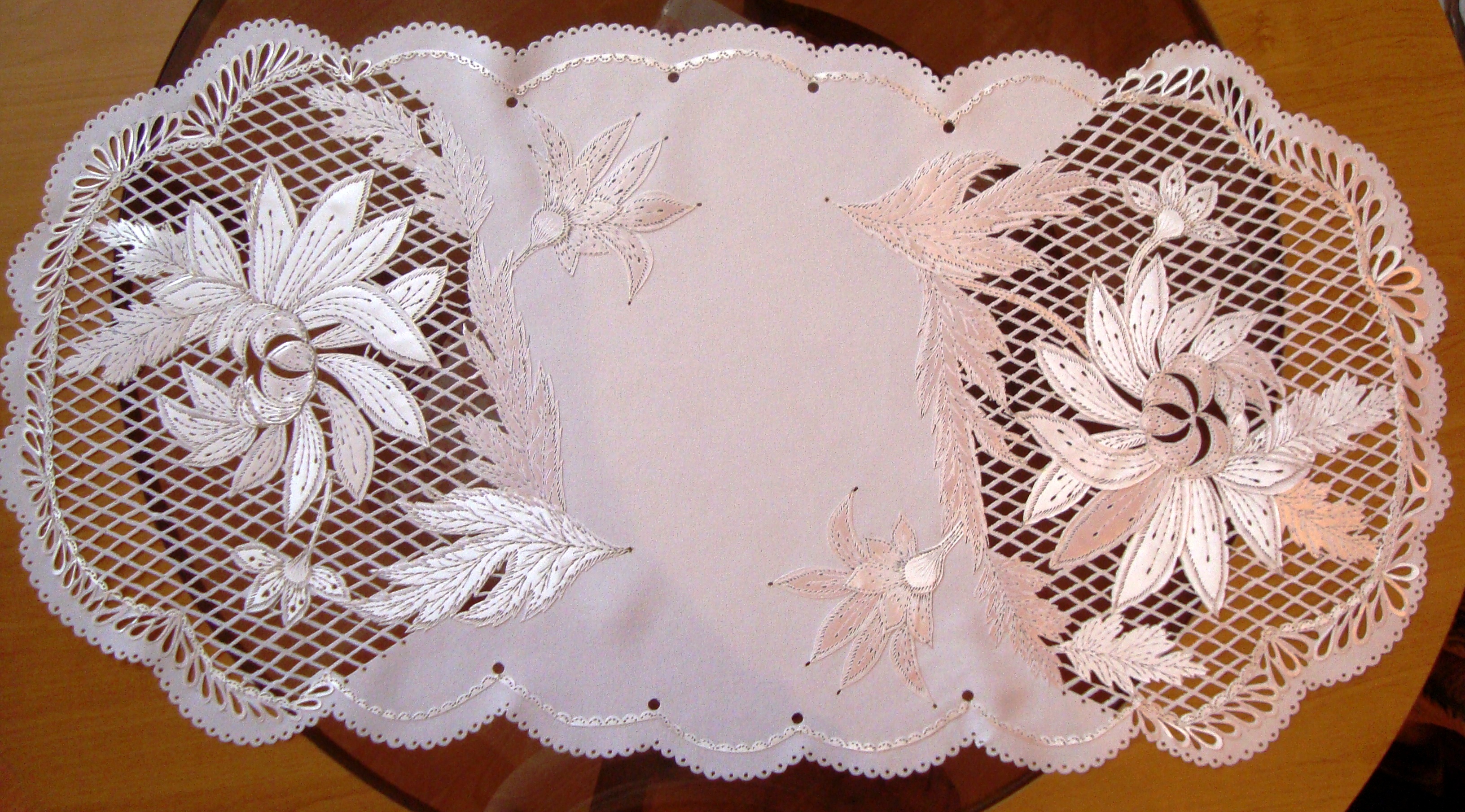 Художественное выжигание по шелку в стиле имитации "Белой глади" и "Ришелье".