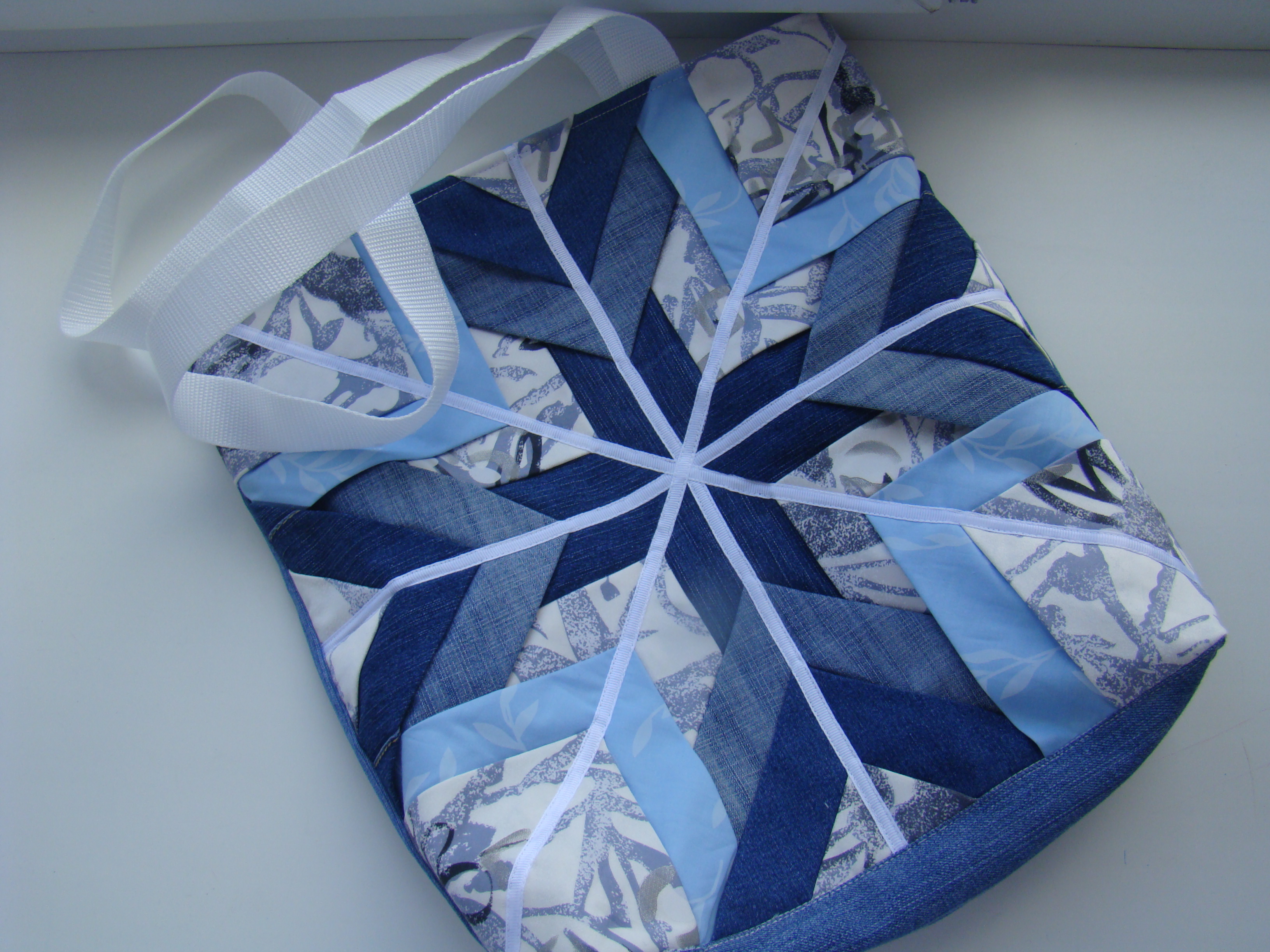 Какая женщина не любит сумочки. Решила заглянуть в интернет и увидела интересную технику "звезда". Захотелось реализовать идею в джинсовой сумке-тоут. Результат порадовал. Процесс не простой, но понравился. Всем новых вдохновений.