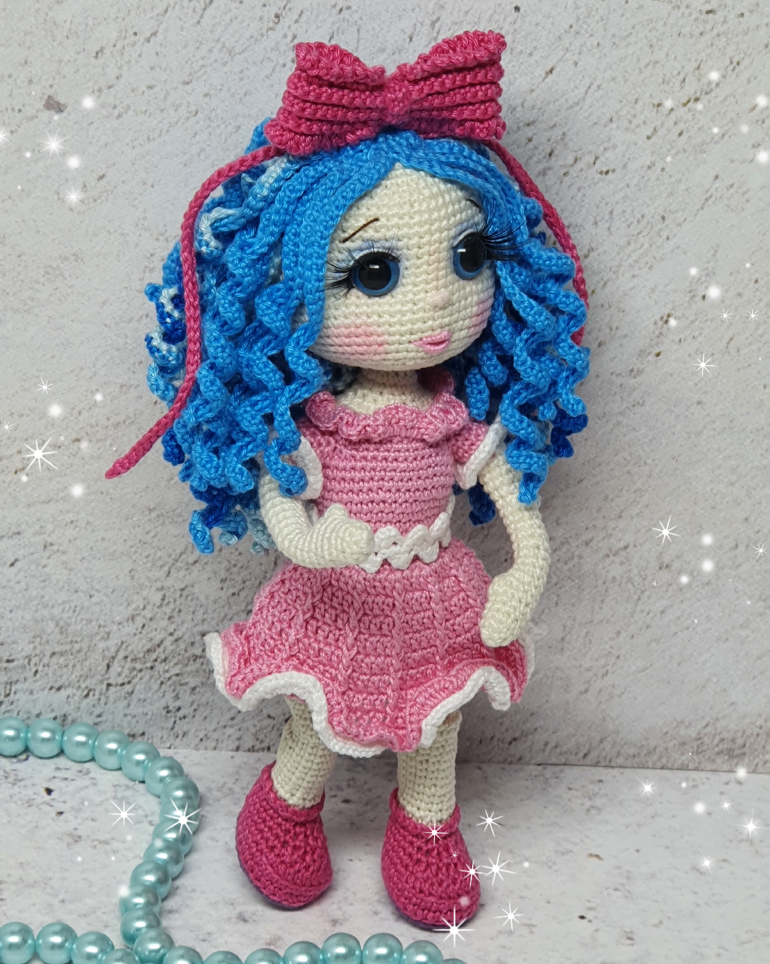 Теперь у моего Буратино есть подружка Мальвина. Вот такая малышка с голубыми волосами.