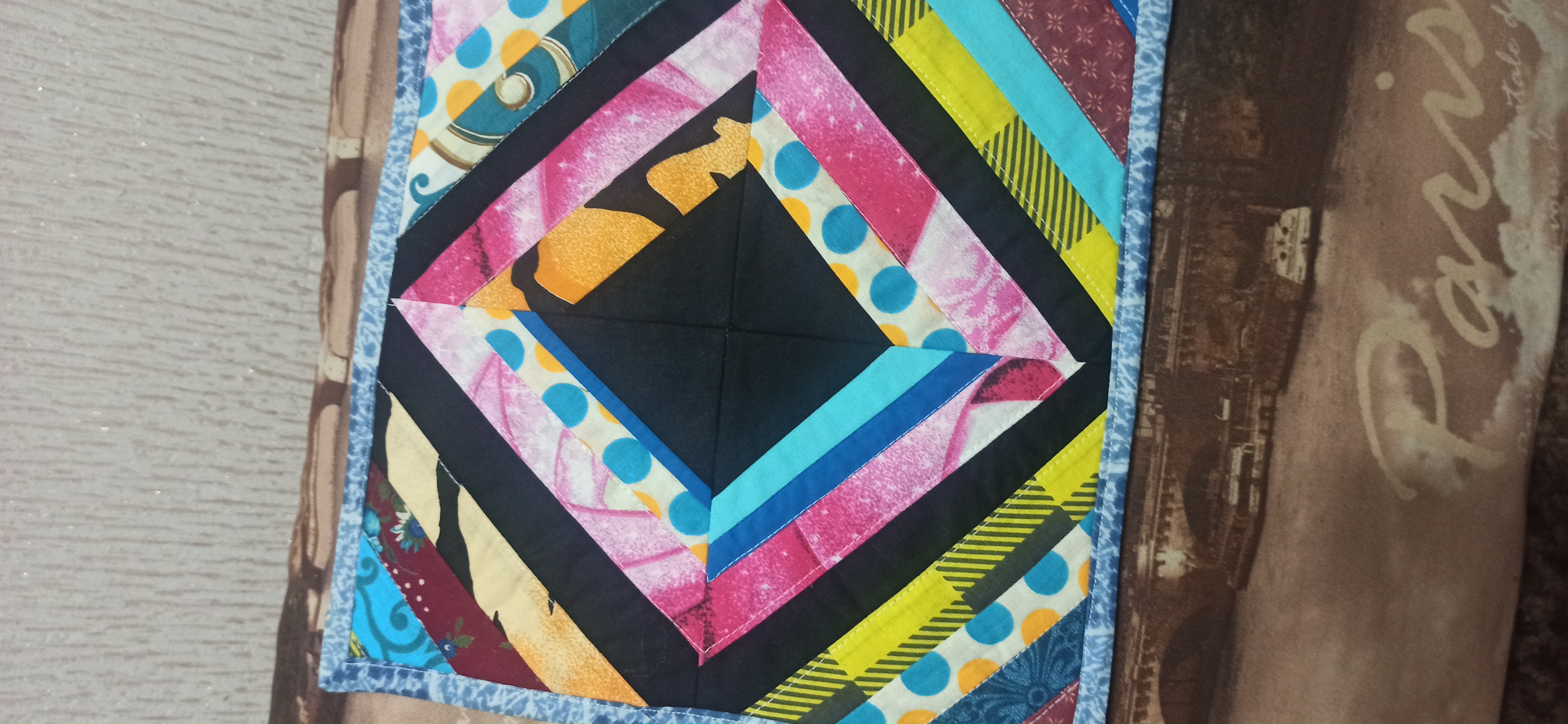 Набралось много разных лоскутков. Вот решила начать их утилизацию.быстро и легко, на одном дыхании сшились вот такие яркие, позитивные ланчматы(они же подставки под горячее). Вна контрасте с чёрным получилось очень ярко. Всём рекомендую!)