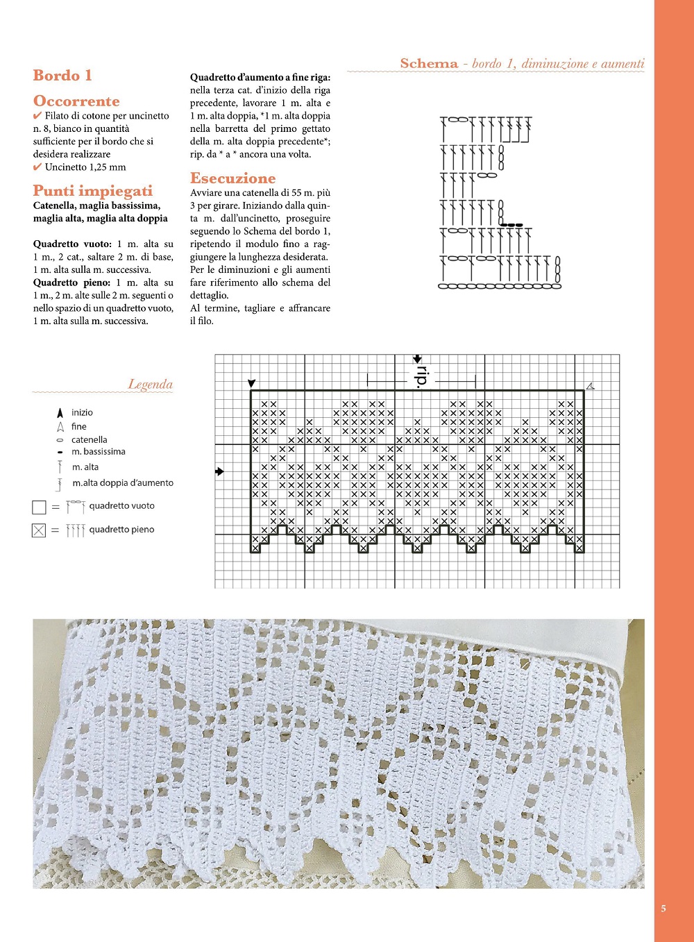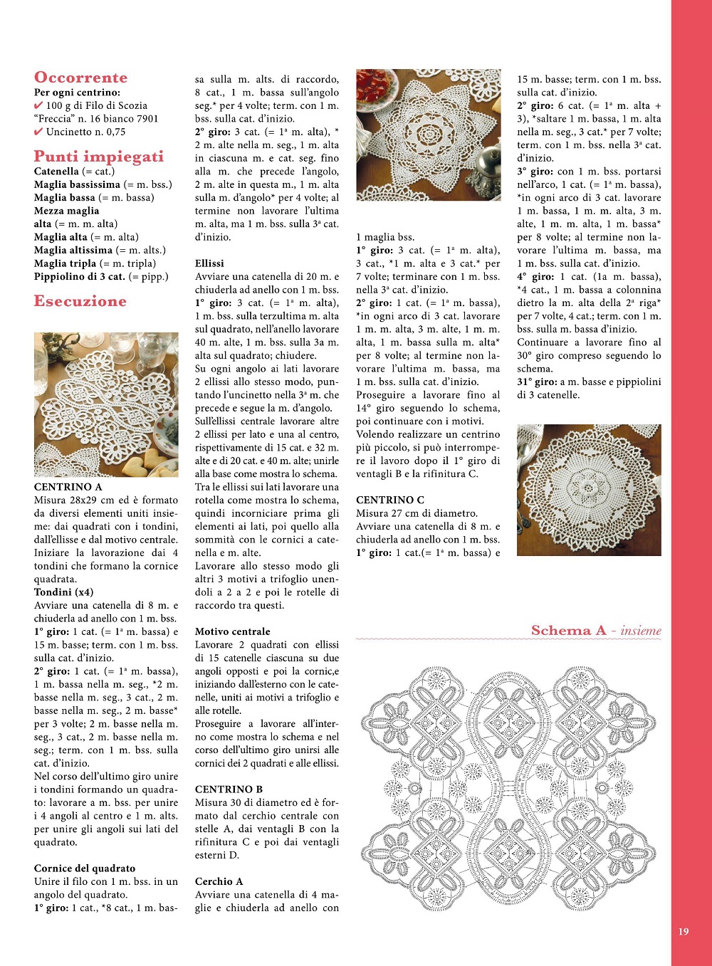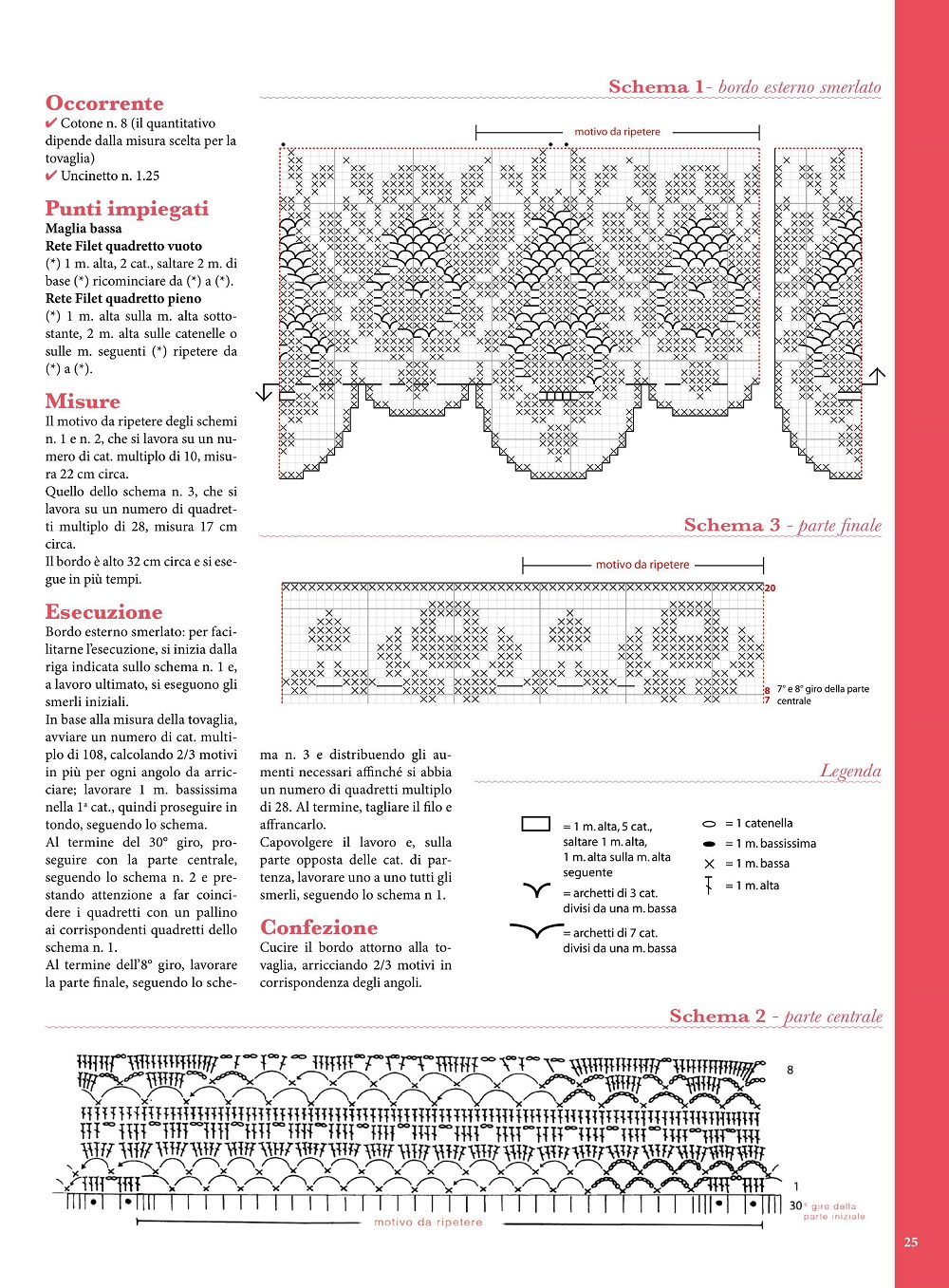Итальянский журнал по вязанию крючком и вышивке крестиком. В каждом номере проекты и идеи для создания уюта в вашем доме: занавески, бордюры, салфетки, кайма, связанные крючком в филейной технике. А также сумки, пледы, подушки, коврики, прихватки и многое другое.