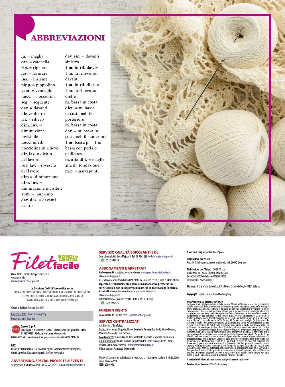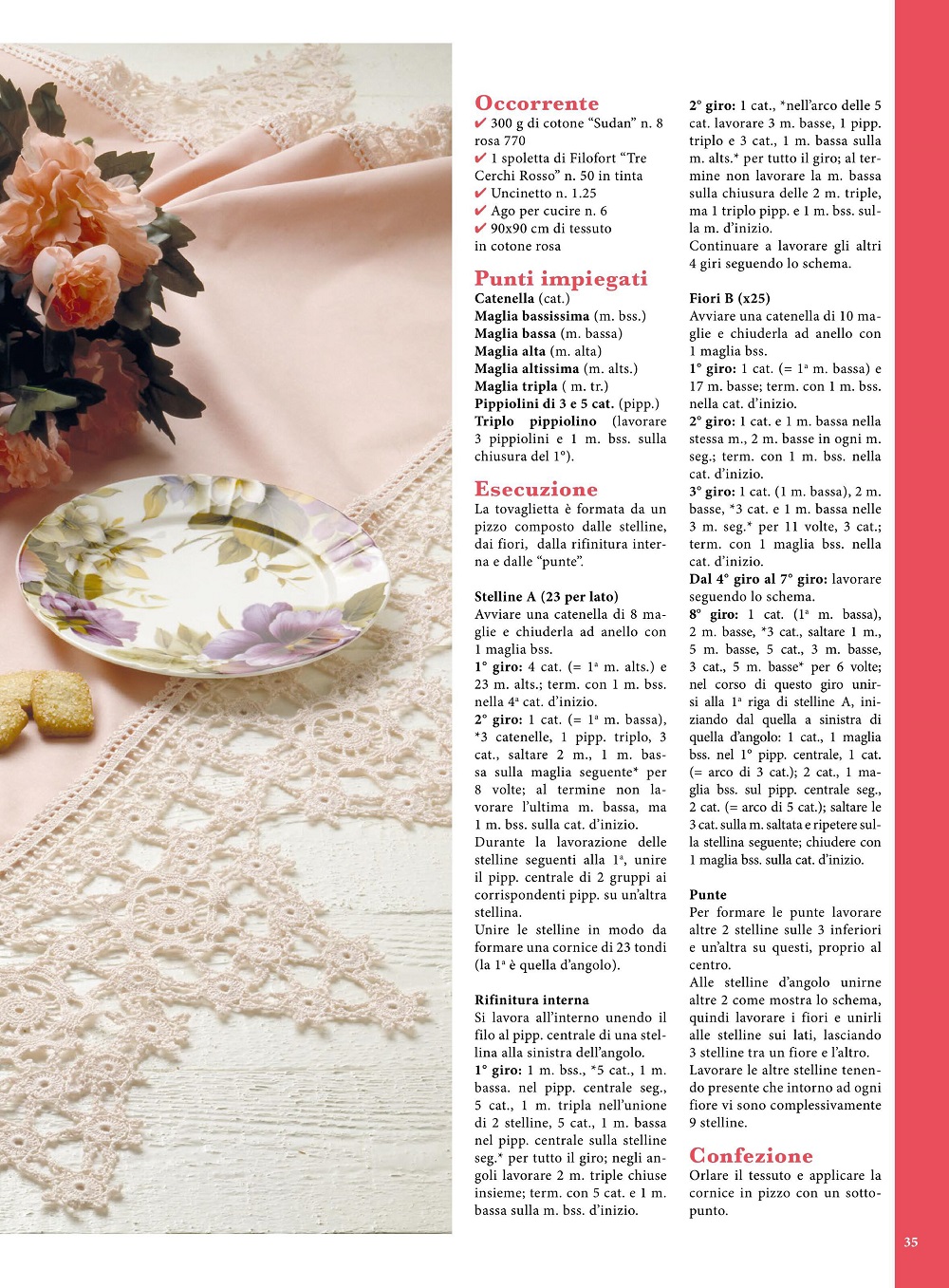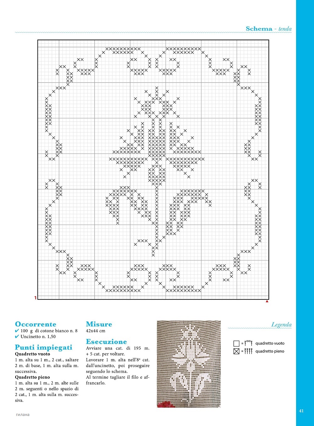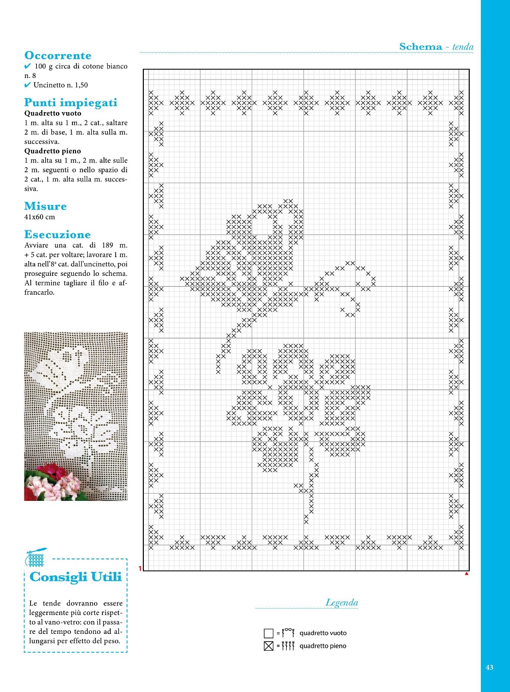 Итальянский журнал по вязанию крючком и вышивке крестиком. В каждом номере проекты и идеи для создания уюта в вашем доме: занавески, бордюры, салфетки, кайма, связанные крючком в филейной технике. А также сумки, пледы, подушки, коврики, прихватки и многое другое.
