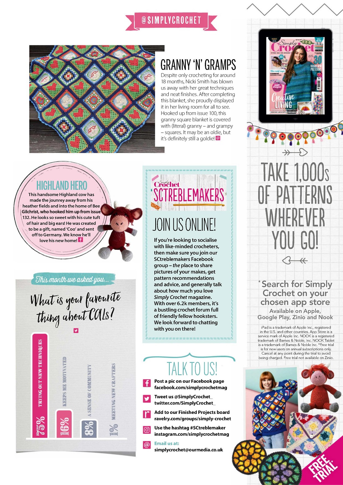 Журнал "Simply Crochet" посвящён вязанию крючком. В каждом выпуске проекты для вязания моделей одежды для взрослых идетей, аксессуаров, игрушек, предметов интерьера для дома.
