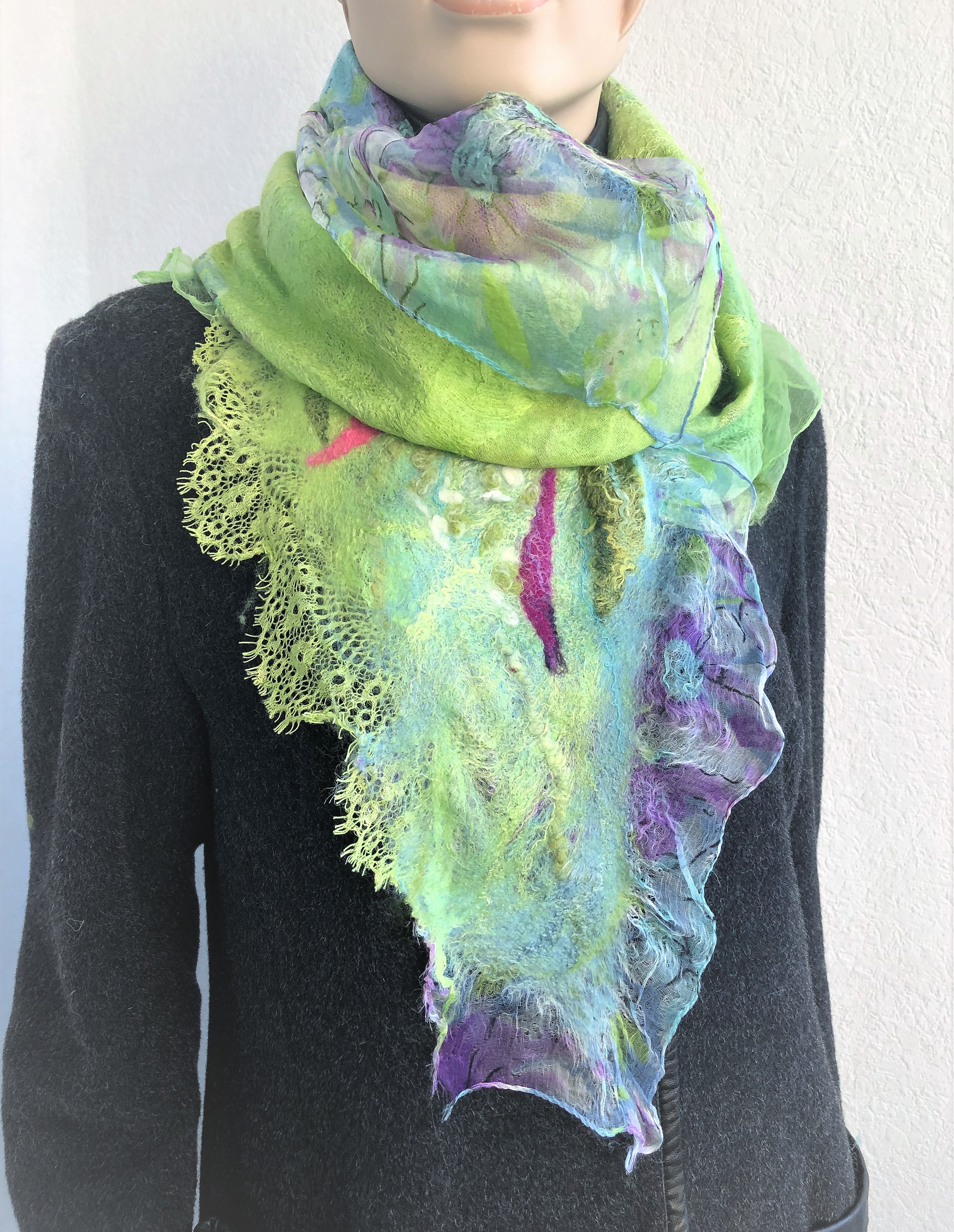 Людмила, да, Вы правильно поняли- мокрое валяние. И шарф, и пальто. Вваливать, как оказалось, можно всё- хоть шелк, пряжу, хоть кружева. И не только сбоку. Спасибо Вам за впечатления!