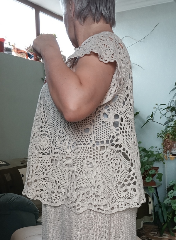 Спасибо. Возможно, это техника нерегулярного вязания, не знаю. Мне другое интересно: почему «не хватает фантазии». Я, вроде, фантазией совсем не пользовалась ))). Вязала что-то вроде цветов и колец и соединяла их регулярной сеткой и все.