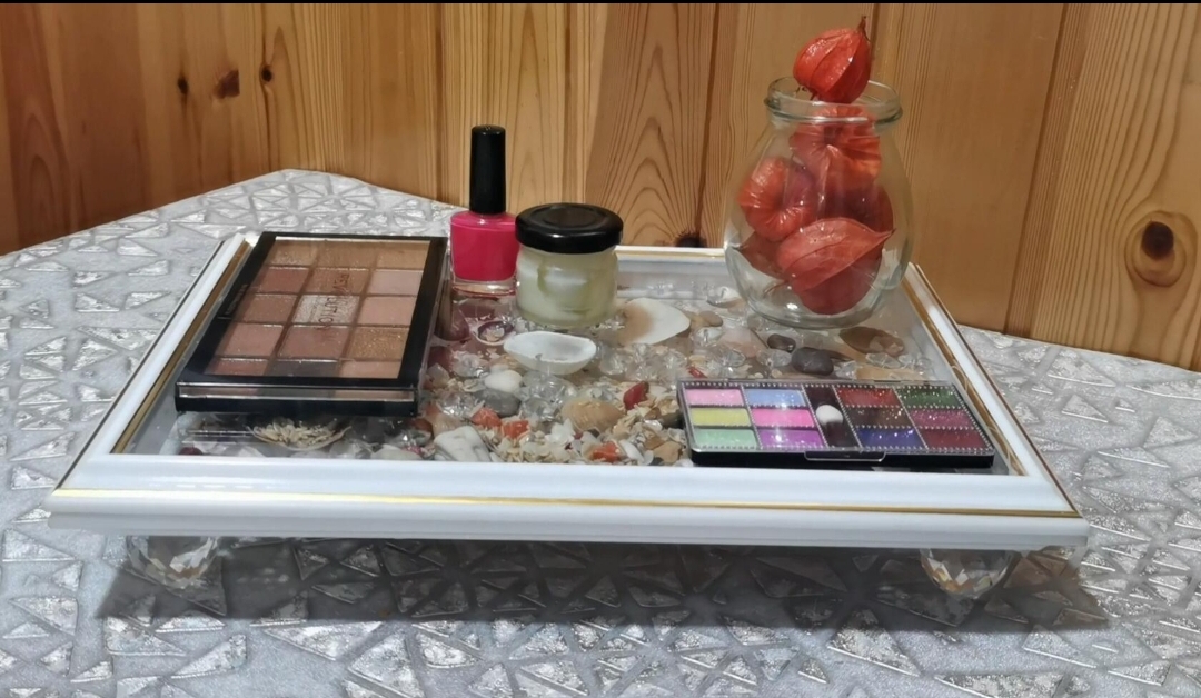 Согласна с Людочкой, интересная идея. Никак не придумаю идею подноса в прихожую. А еще, мне кажется, с детьми можно сделать. Листья и цветы сухие положить.