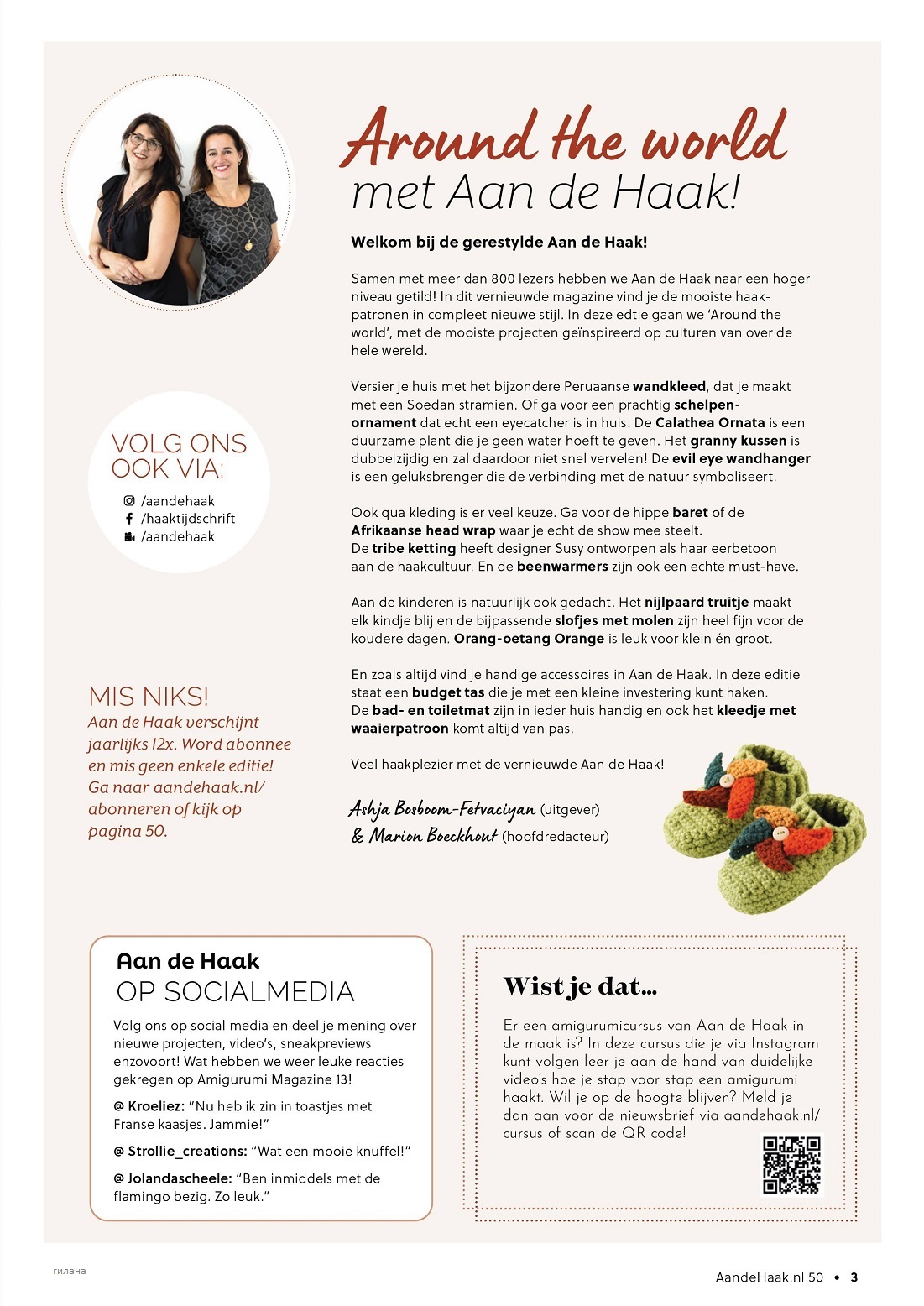 Aan de Haak - журнал о вязании из Нидерландов. Каждый выпуск содержит множество проектов по вязанию спицами и крючком как для самых опытных, так и для начинающих рукодельниц. Хотите ли вы вязать модный шарф или подушку или лучше освоить новую технику? Открывайте журнал и подключайтесь к работе!