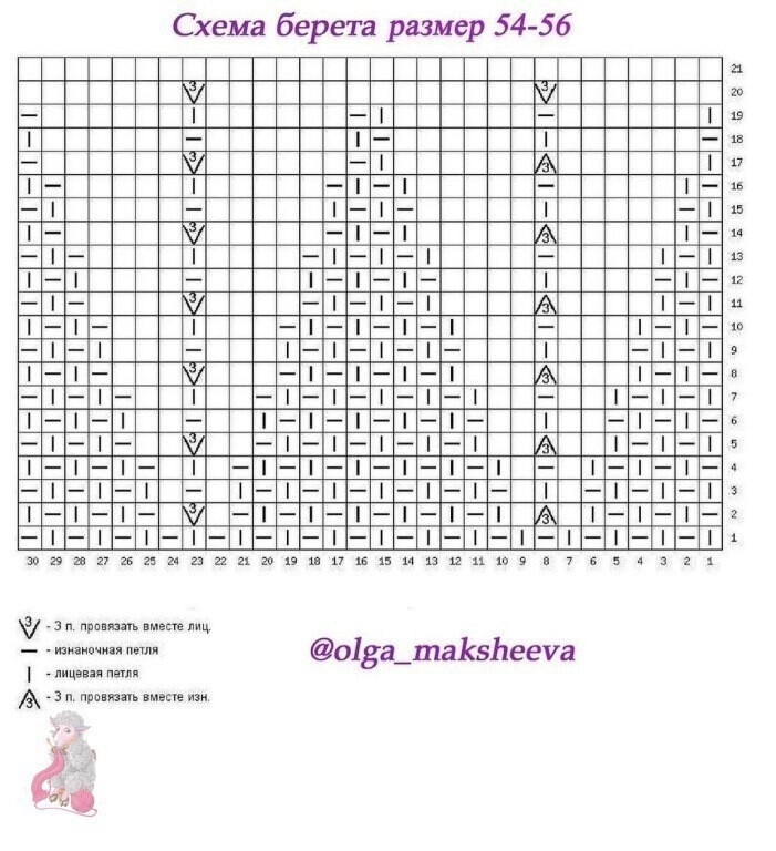 Не бойтесь экспериментировать, можно вязать в 3, 4 и даже в 5 нитей, убавки делать не до самого конца по схеме, а раньше провязать несколько рядов по 2 вместе, чередуя 2 вместе изн, 2 вместе лицевой, тогда макушка под помпон будет в складочку, более объемная. Этот берет связан из итальянкой ангоры - 70% ангора, 10% меринос, 20% ПА (550 м в 100 гр) в 3 нити. На размер 57-58 набираем 76 петель на резинку, спицы 3,5. Прибавляла петли до 121 п и вязала по первой схеме спицами 5.