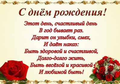 Поздравляю с Днем Рождения и желаю Вам долгих лет жизни, а самое главное, здоровья. И как говорится: " А все остальное купим, а если не купим, то сошьем, а если не сошьем, то значит нам этого и не надо!"