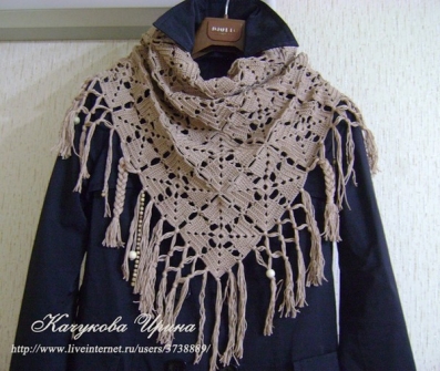 Вотт акой вот бактус связалася, пока лежала в больнице. Связан крючком из мотивов (ох и нудное это дело!)). Нитки - шерсть с вискозой, фирмы "Пехорка". Очень приятные в работе) Украшение -деревянные бусины. Что скажете?