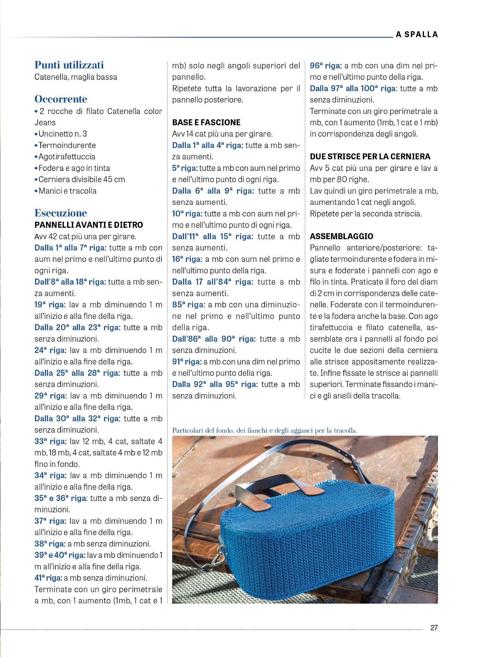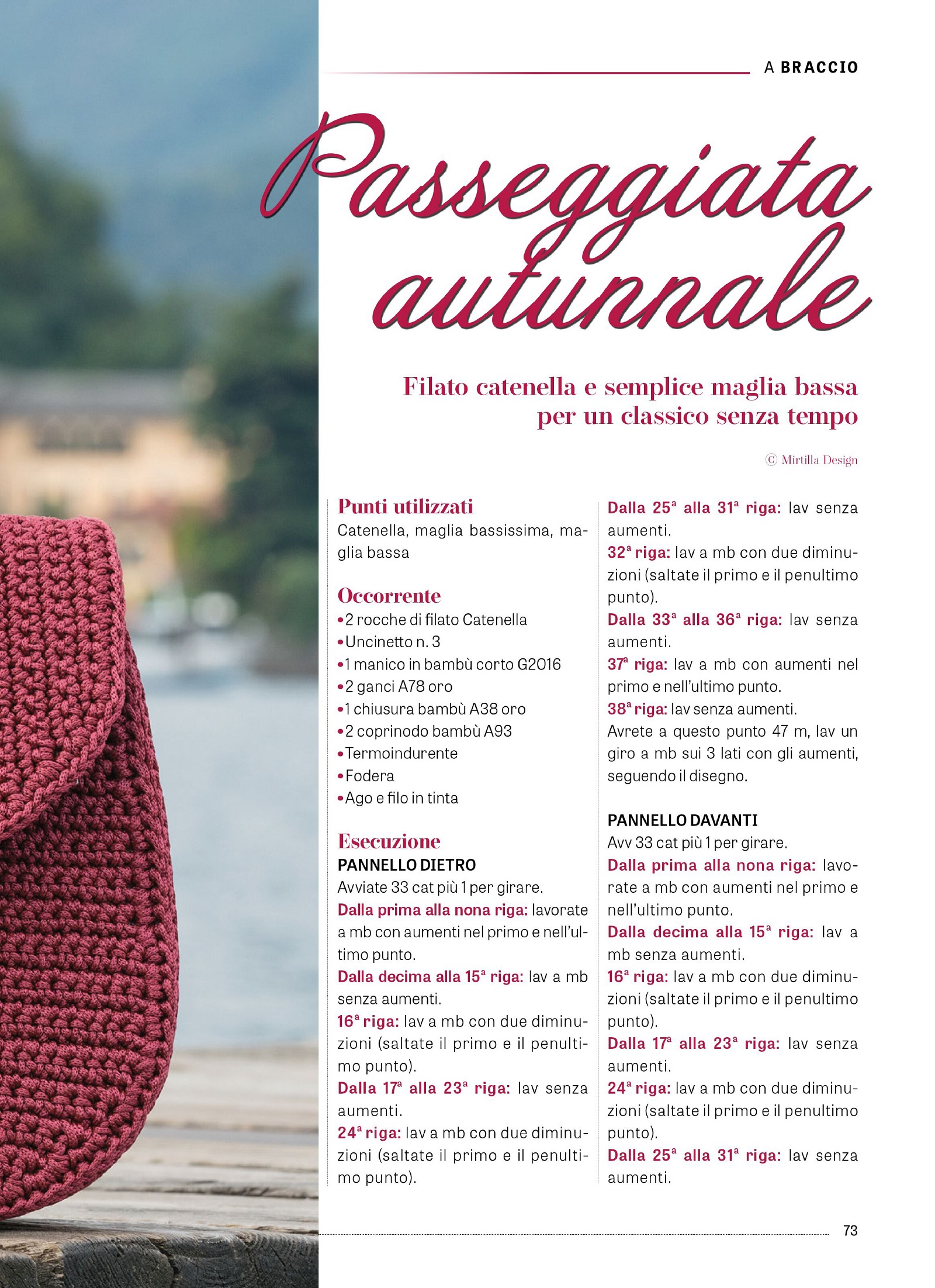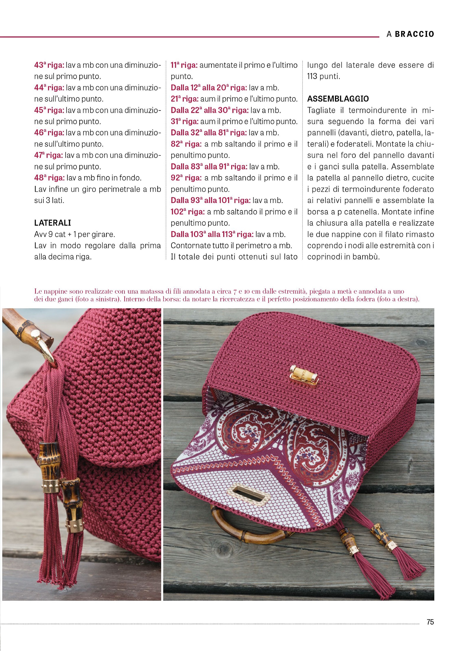 Итальянский журнал по вязанию крючком. В каждом номере проекты и идеи для создания уюта в вашем доме: занавески, бордюры, салфетки, кайма, связанные крючком в филейной технике. Новый спецвыпуск посвящен вязанию сумок.