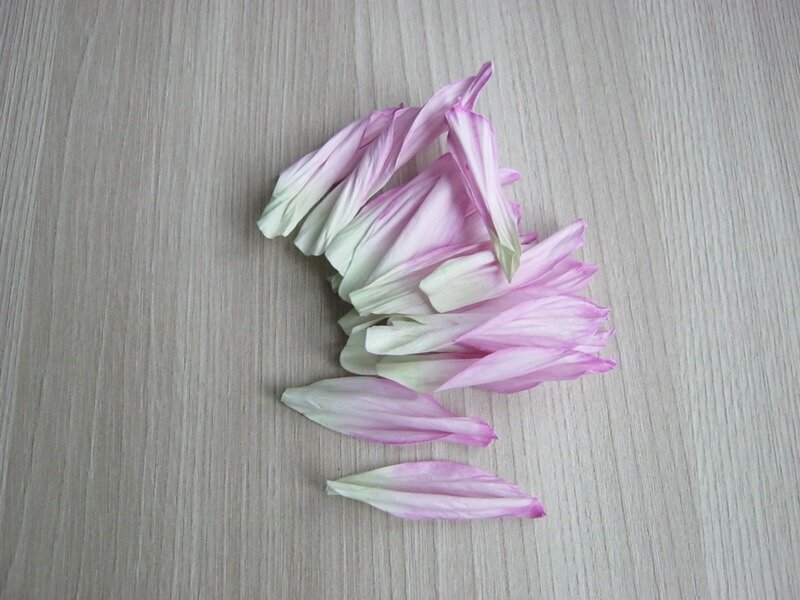 Далее я брала уже тонкие лепестки и каждый из них вытягивала в форме лодочки.