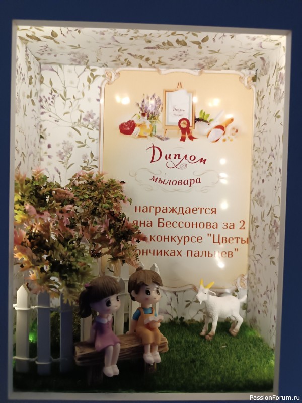 Вот такие дипломы делала для конкурса мыловарения. Миниатюра с подсветкой