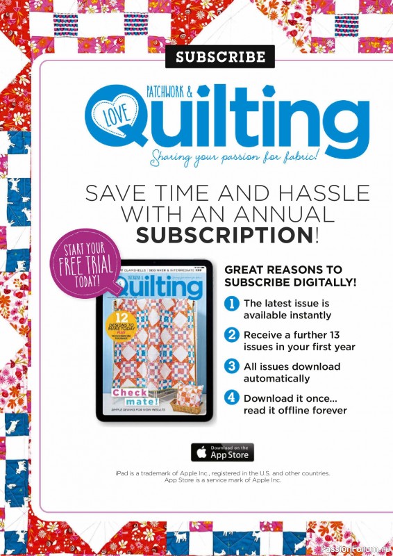 Журнал по пэчворку и квилтингу. На его страницах собрано множество великолепных, интересных проектов, созданных в технике лоскутного шитья.