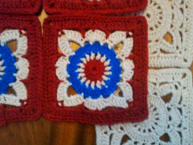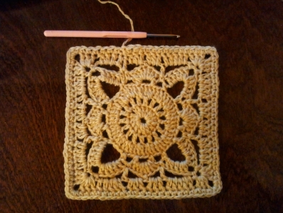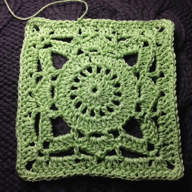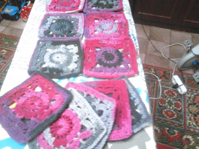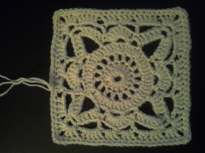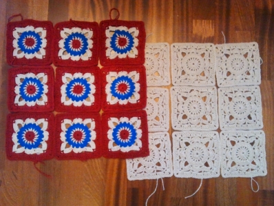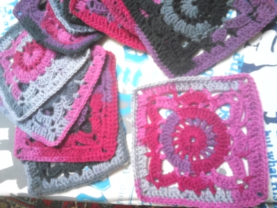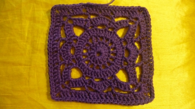 По-моему одноцветный квадрат с этим узором смотрится симпатичнее. Но из какого квадрата будет подушка, а из какого плед пока не знаю.