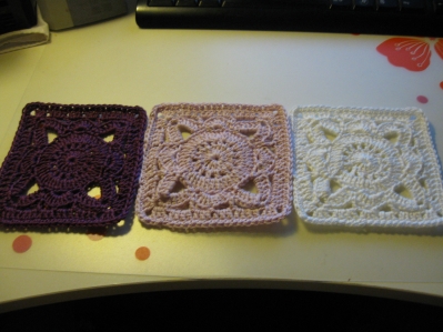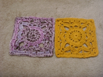 Эти квадратики связаны из акриловых ниток. Тоже не плохо вяжется. Форму придать сложнее, акрил тянется. Узор немного расплывается из-за того, что нитка слегка мохрится.