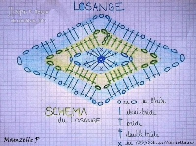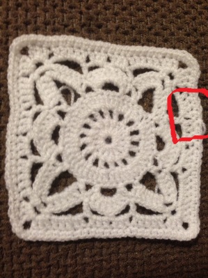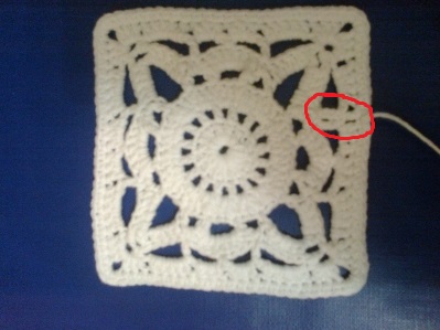 Значит здесь 3 воздушные петли, затем 4 столбика с накидом в арочку из 5 петель, 3 столбика с накидом, 3 воздушные петлии еще 3 столбика с накидом в угловую арочку из 3 петель… В конце круга 3 столбика с накидом и соединительная петля. Это ряд, в котором мы вяжем по кругу все столбики с накидом, т.е. «выравниваем квадрат. Так?