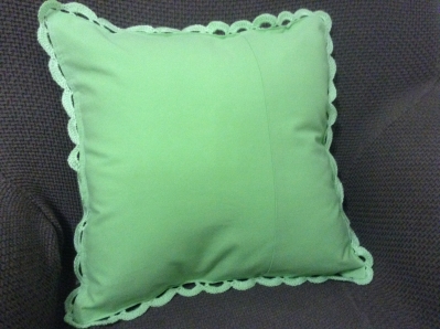 3. К примеру, я решила сшить наволочку чуть меньше своего вязания (чтоб обвязка слегка торчала) и наволочка будет на молнии.