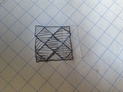 Вам нужен только один центральный квадрат, к нему довязываете треугольник слева, потом треугольник справа, когда останется последняя петля, то набираете петли по внутреннему краю этого треугольника, добавляете центральную петлю из начального квадрата и добираете петли из левого треугольника, затем вяжете целый квадрат над первым.