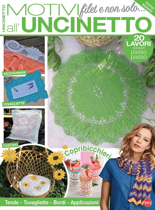 Итальянский журнал по вязанию крючком и вышивке крестиком. В каждом номере проекты и идеи для создания уюта в вашем доме: занавески, бордюры, салфетки, кайма, связанные крючком в филейной технике. А также сумки, пледы, подушки, коврики, прихватки и многое другое.