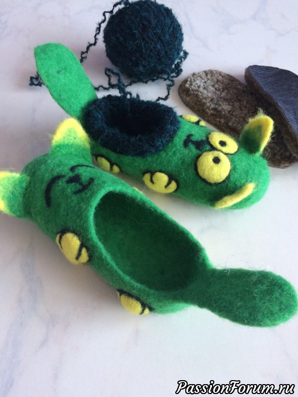 Добрый день!Девочки прочитала про совместное валяние тапочек и извените не выдержала.Сваляла сыночку!Еслиу вас будут вопросы спрашивайте.Со всеми поделюсь.Надеюсь похожи.