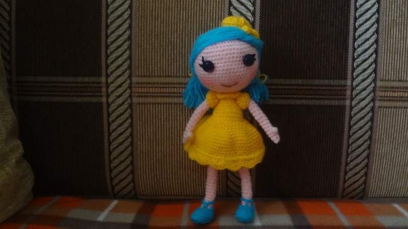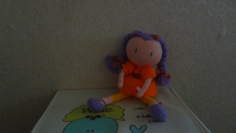 Рост куколки 27 см. Стоимость снижена на 20% до 31.08.2016года. Самостоятельно сидит,стоит у опоры,предметы одежды несъемные. Материал:пряжа акрил 100%,наполнитель 100% хлопок. По вопросам приобретения обращаться в личные сообщения.