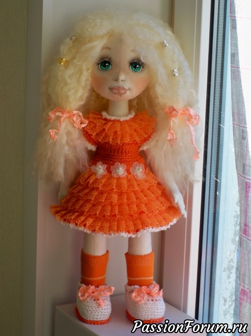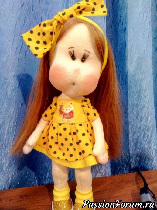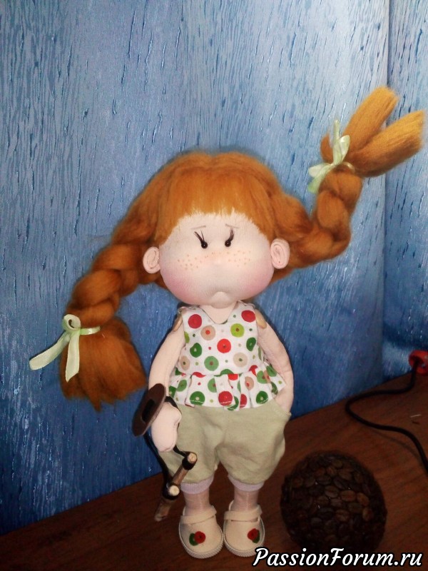 Интерьерная текстильная кукла мечтает найти свою мамочку !!! Рост куколки 47 см, стоИт самостоятельно, одежда несъёмная, волосики натуральные - овечка Машам.