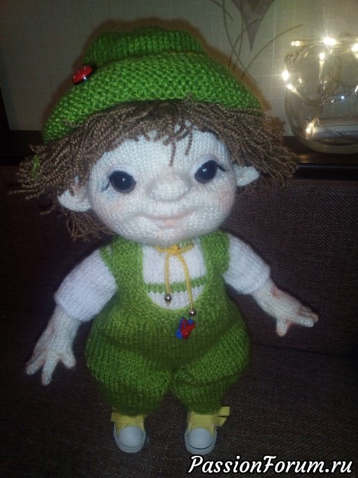 Здравствуйте,дорогие подруженьки и рукодельницы!Родился Эльфик,по МК Татьяны Осипенко.Попросили связать куклу для девочки Кристины,10 лет.У нее уже есть куколка связанная мною и она попросила еще одну.Подумав,я решила сделать необычный подарок и нашла вот такое Чудо.Имя ему даст маленькая хозяйка.Ростиком Эльфик 31см.Ручки и ножки на провлочном каркасе.Пальчики армированы и конфетку он держит сам,как и стоит тоже сам.Пряжа Турецкая,детский акрил.Глазки готовые.Кеды готовые,пр-ва Китай.Вязала его нед...