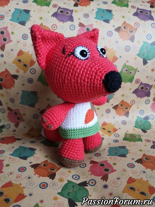 Рыжий лисенок связан крючком из пряжи нако париж. Лапки сгибаются, носик и подушечки на лапках из полимерной глины.