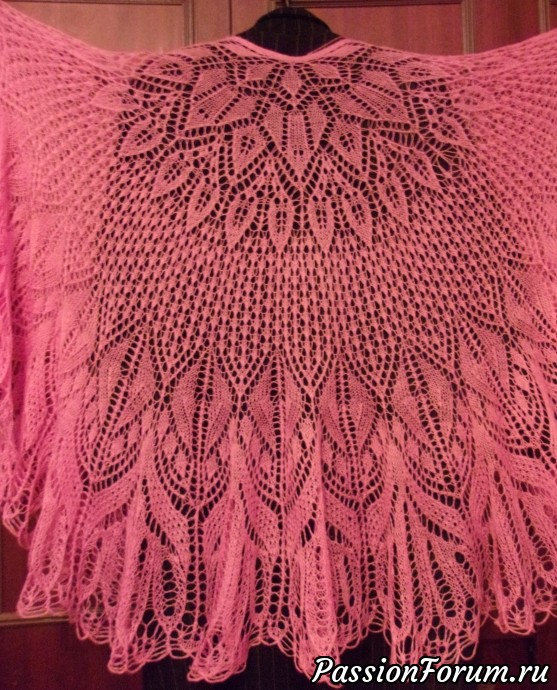 Пряжа "Пума" 100% австралийский меринос, в 100г 700 м. Шаль очень большая - для шикарных женщин. Размеры : по горловине 210 см, высота по спинке 86 см. Шаль вязалась при использовании узоров с французских и испанских салфеток. На днях объявлю набор желающих протестировать шаль.