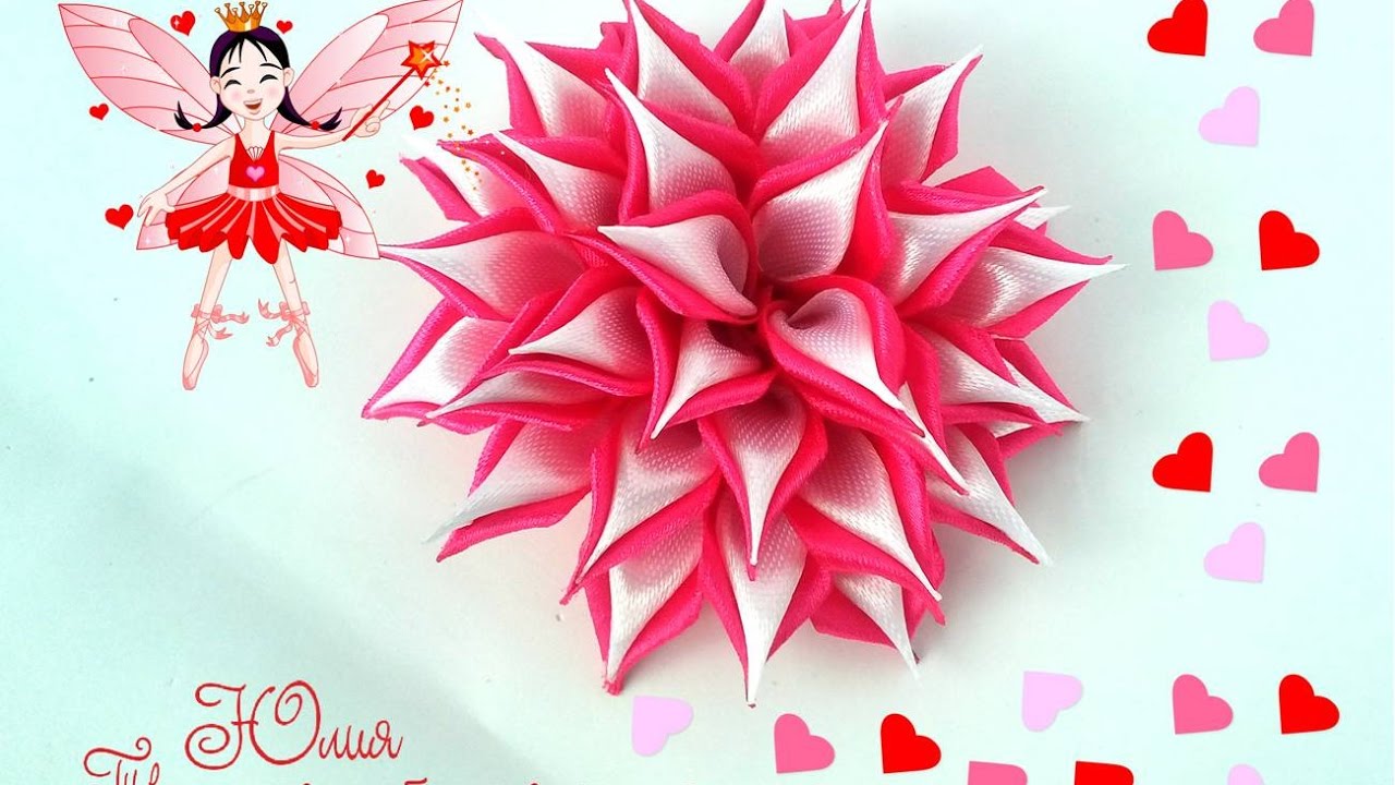 Необычный цветок канзаши Новый двойной лепесток Мастер класс Юлия Творческая мастерская