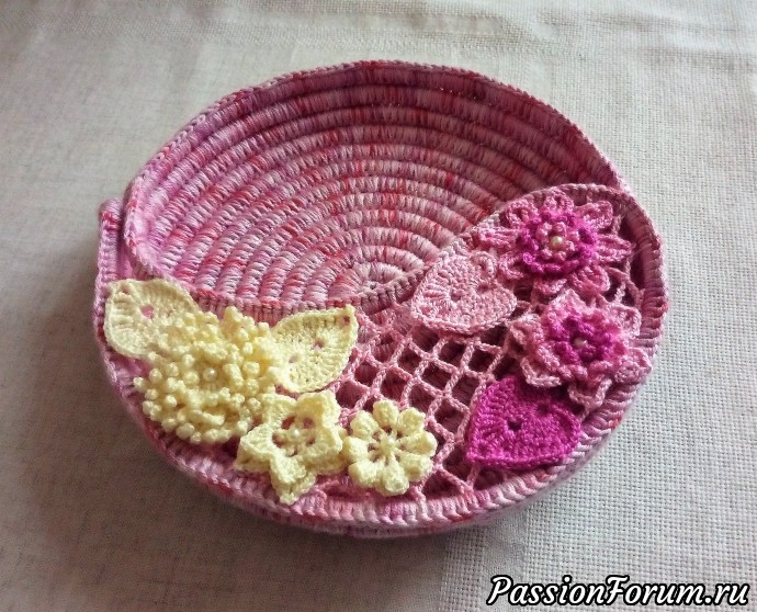 Здравствуйте дорогие рукодельницы! Напомнила мне Наташа о корзинке-вазочке. Свою связала месяц назад, это уже третья по счету, получилась в таком виде.