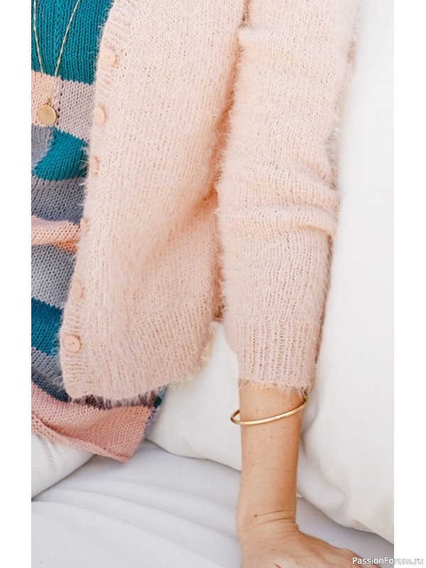 Плотность вязания, лиц. гладь, спицы № 4,5: 23 п. и 32 р. = 10×10 см.