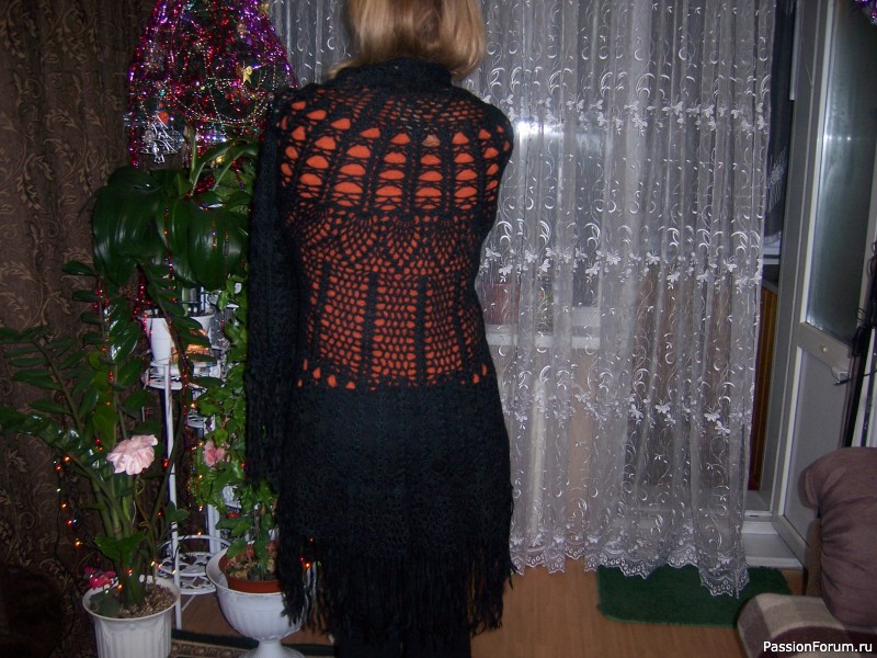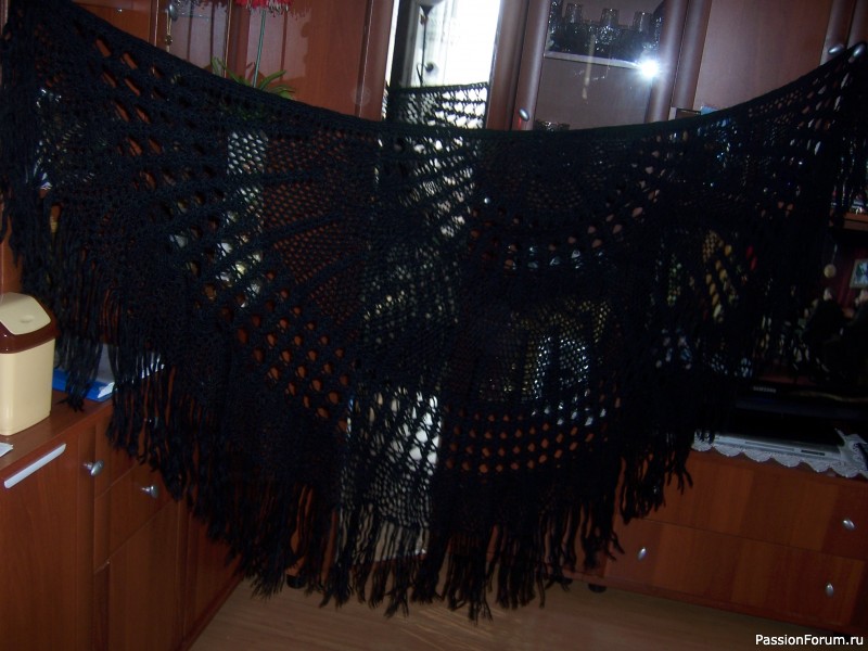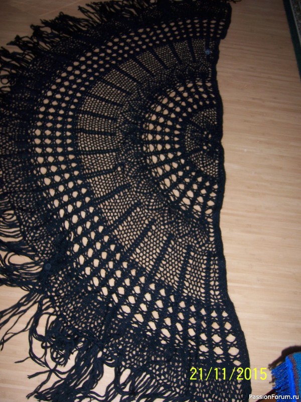 шаль в виде полукруга. Очень шикарно смотрится на цветном пальто.
