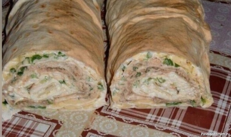 1. Разложить лаваш. Смазать каждый лист майонезом. На один — натереть яйца, на второй — сыр, на третий — помятую вилкой сайру. Сверху каждый лист посыпать луком и укропом.