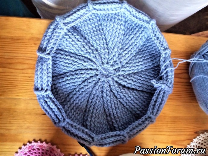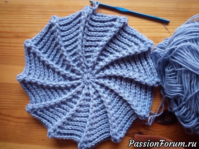 3-й ряд - вяжете 12 выпуклых рельефных столбиков, между ними - 1 вогнутый рельефный столбик. Получается 12 секторов.