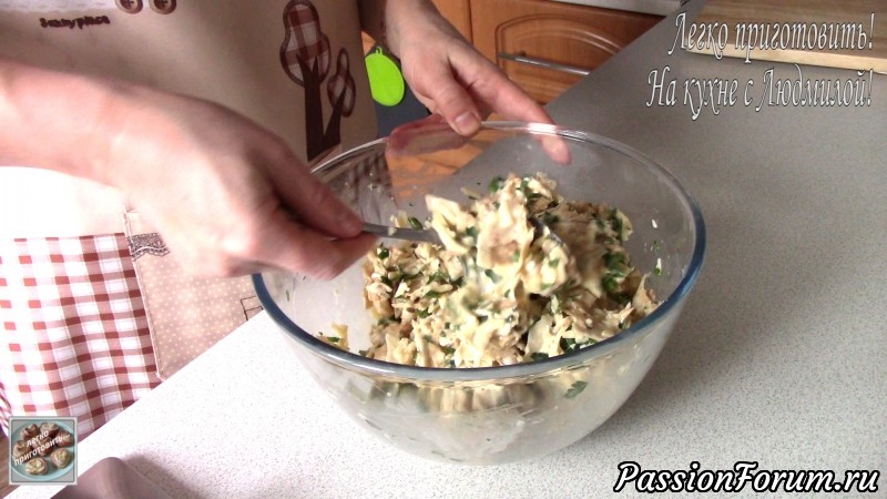 Все хорошо перемешиваю. Масса должна получиться густая, но сочная. Если она получилась жидкая, то можно добавить немного лаваша, если очень густая, то можно добавить немного молока или куриное яйцо.