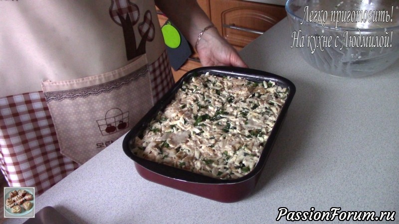 4. Форму ставлю в заранее разогретую до 180 градусов духовку и буду выпекать пирог до зарумянивания. У меня духовка электрическая, режим верхний и нижний нагрев, в ней пять уровне, форму ставлю на второй снизу уровень.