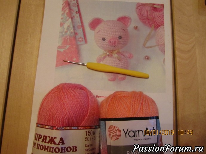 Даю ссылку на описание МК. Там не указано из какой пряжи вязала мастерица, поэтому взяла то, что оказалось дома. Крючок 1,25 мм и нитки "Пряжа для помпонов" и YarmArt, тем более, что обе одинаковы по толщине.