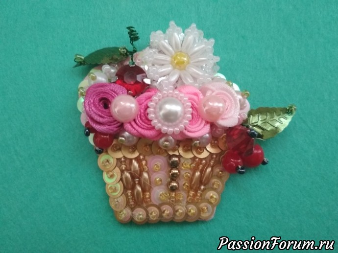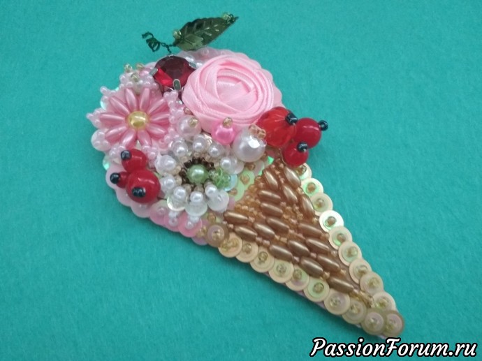 Продолжаю делать броши в смешанной технике - бисер, пайетки, атласные ленты, декоративные элементы и многое другое...
