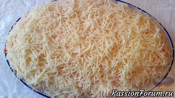 - И в завершении укладываем натёртый сыр.