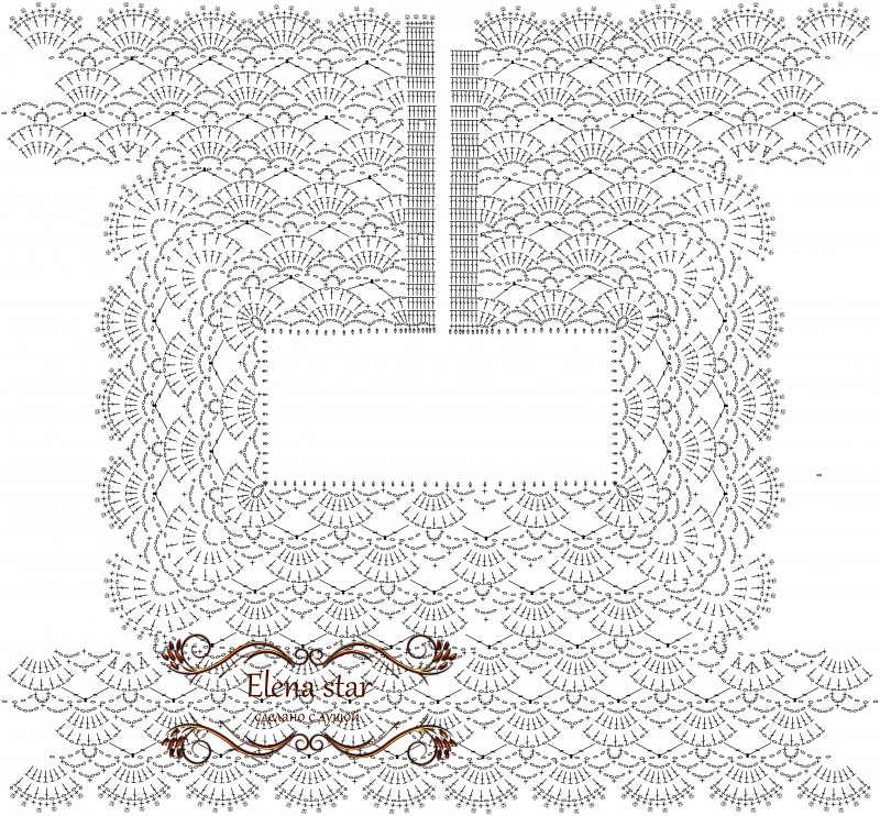 Обратите внимание на неточность на схеме: в местах регланных линий воздушные петли и столбики без накида указаны и по вертикали и по горизонтали, то есть две штуки. На самом деле- там должно быть по одной петле. И данная модель — вяжется без ростка. Поэтому мне пришлось увеличить количество раппортов по высоте, чтобы пройма для рукава была достаточного размера.