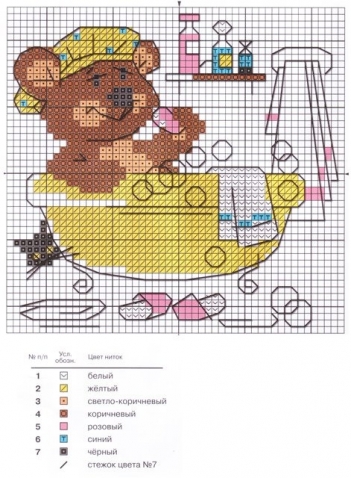 скажите пожалуйста а ключа к схемам нет сереньких мишек тедди, или надо самим подбирать нитки?