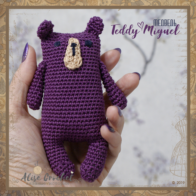 У автора olgamigurumi очень интересные и необычные игрушки. Мне приглянулся мишка Мигель. Благодаря переводу сайта amimore я тоже связала такого замечательного мишутку.