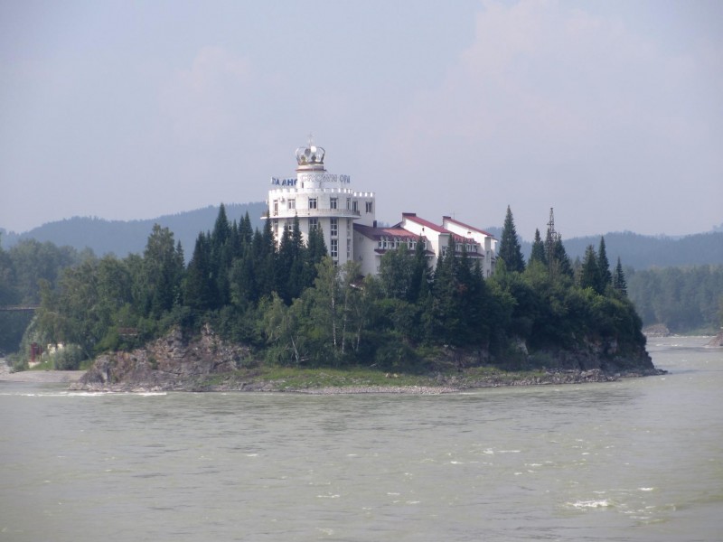 Этот остров Катунь обтекает со всех сторон, там расположена база отдыха. Недалеко озеро Ая