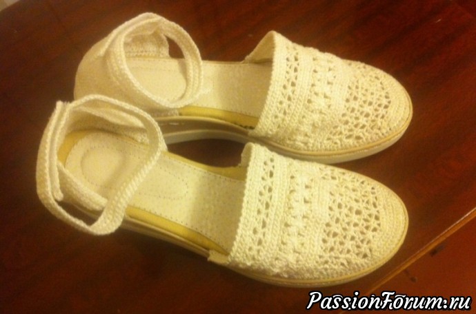- Нитки хлопковые, прочные( у меня хлопок с лавсаном, дочери давно вязала свитерок, теперь распустила и вяжу обувь эти седьмые)
