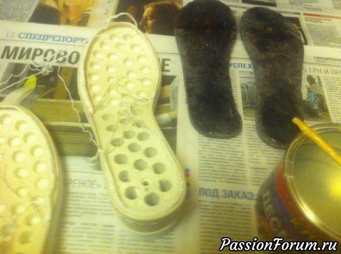 Следующий этап, кожаные стельки, точно так мажем,ждем,греем и клеем.