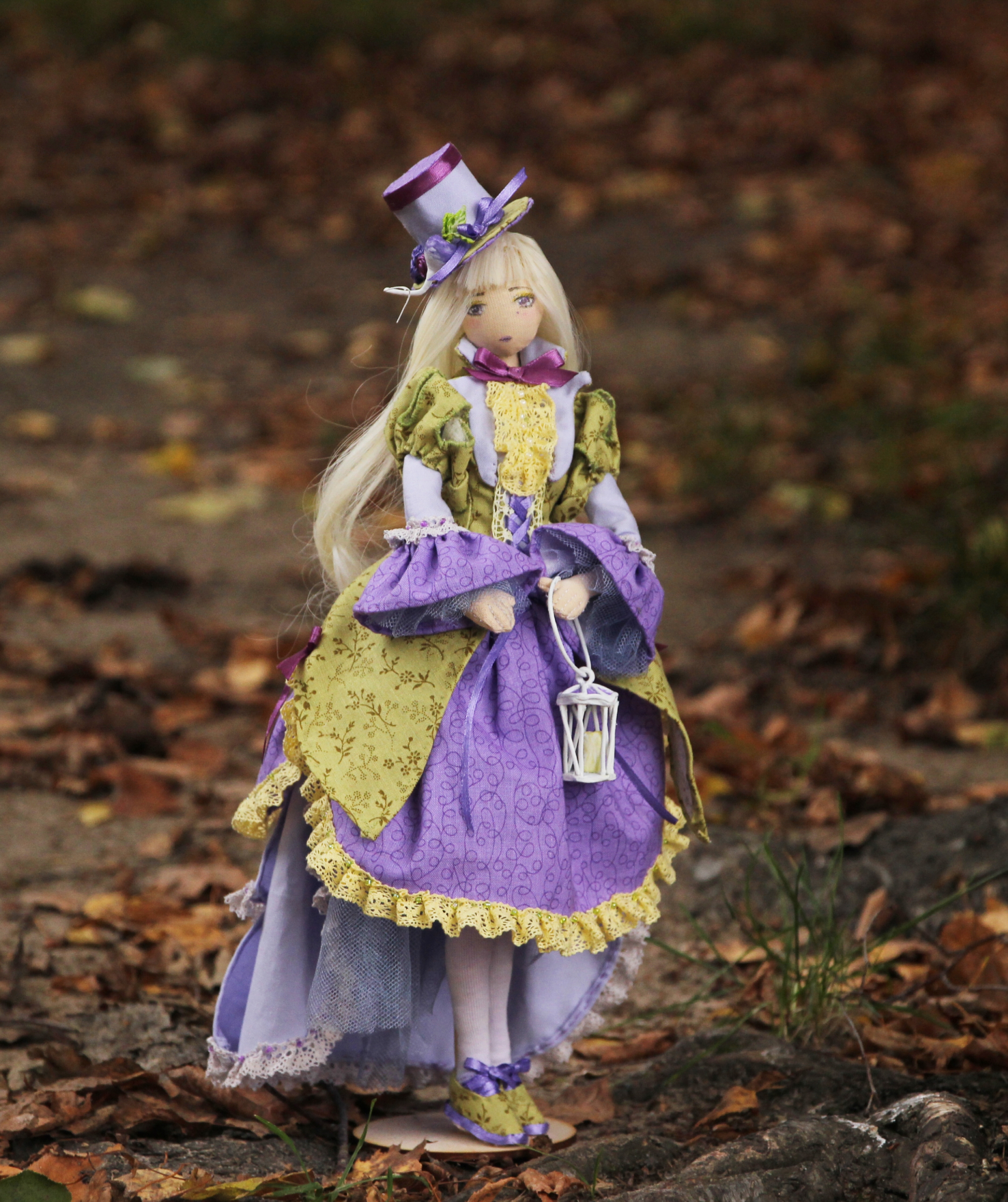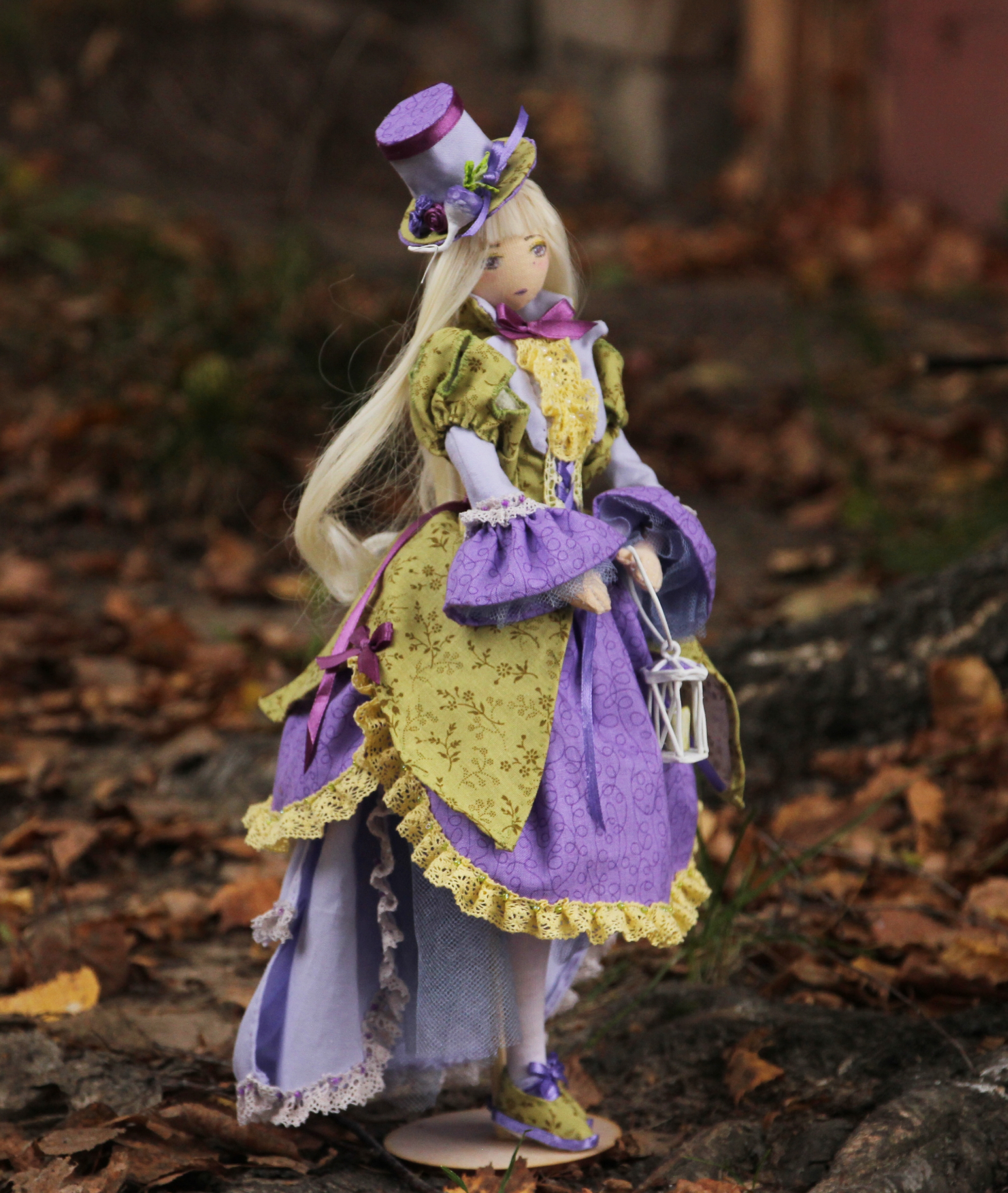 Кого-то вдохновляют прекрасные цветы, а меня вдохновила самая обыкновенная репа. Что-то есть в этом простом овоще - запах осени, собранного урожая, чего-то такого милого и провинциального. Поэтому шляпку куклы украшает изящная пурпурная репа.