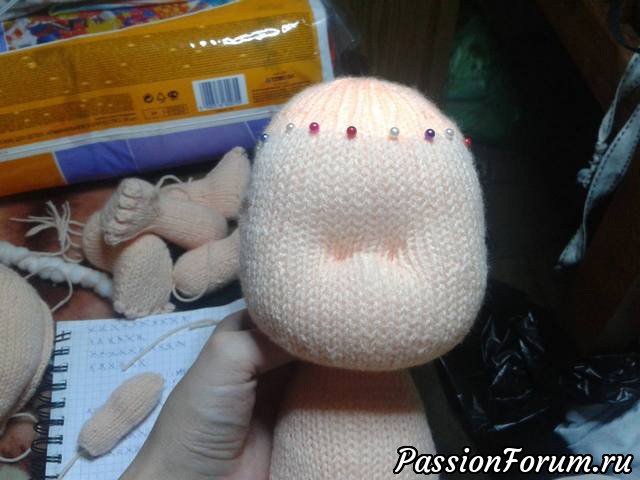 Нарисуйте или обозначьте булавками на голове куклы черту, где у нее будет начинаться волосяной покров.